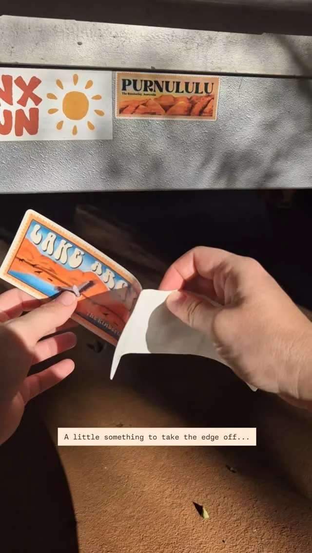 The Gibb River Road sticker features Naomi’s illustration of a classic Troopy by the fire, in front of the Cockburn Ranges.